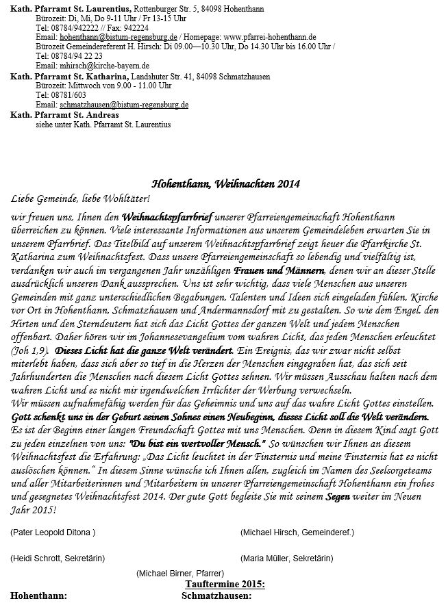 Pfarrbrief vom 22.12. bis zum 11.01.2015