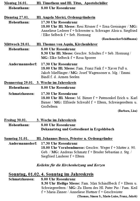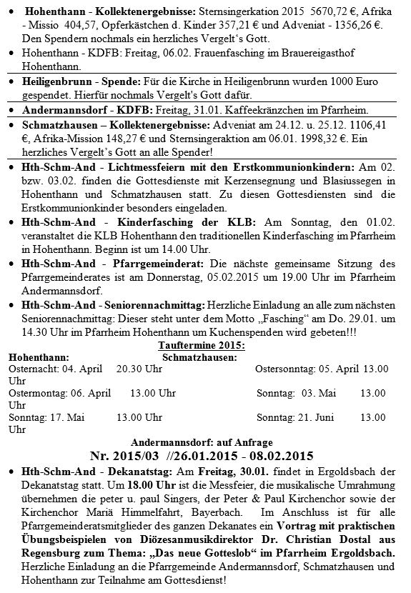 Pfarrbrief vom 26.01. bis zum 08.02.2015