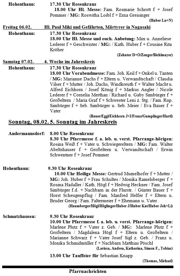 © 2010 - 2022 Pfarreiengemeinschaft Hohenthann - Schmatzhausen - Andermannsdorf |
