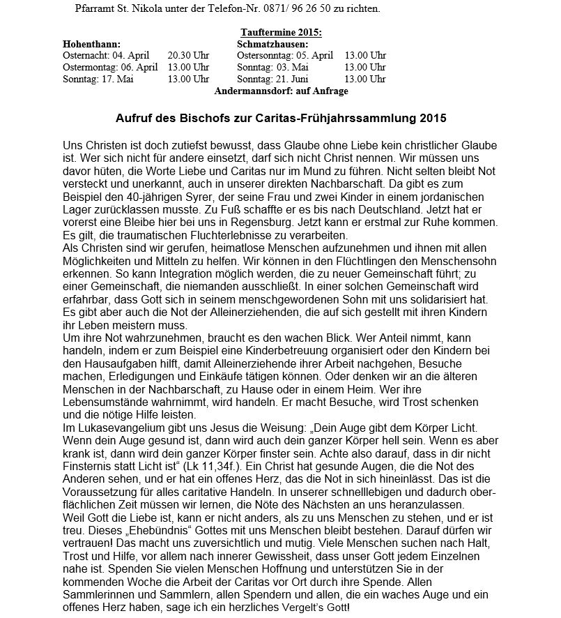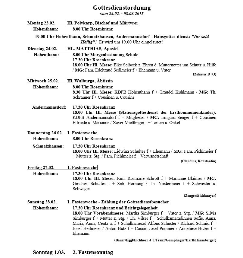 Pfarrbrief vom 23.02. bis zum 08.03.2015