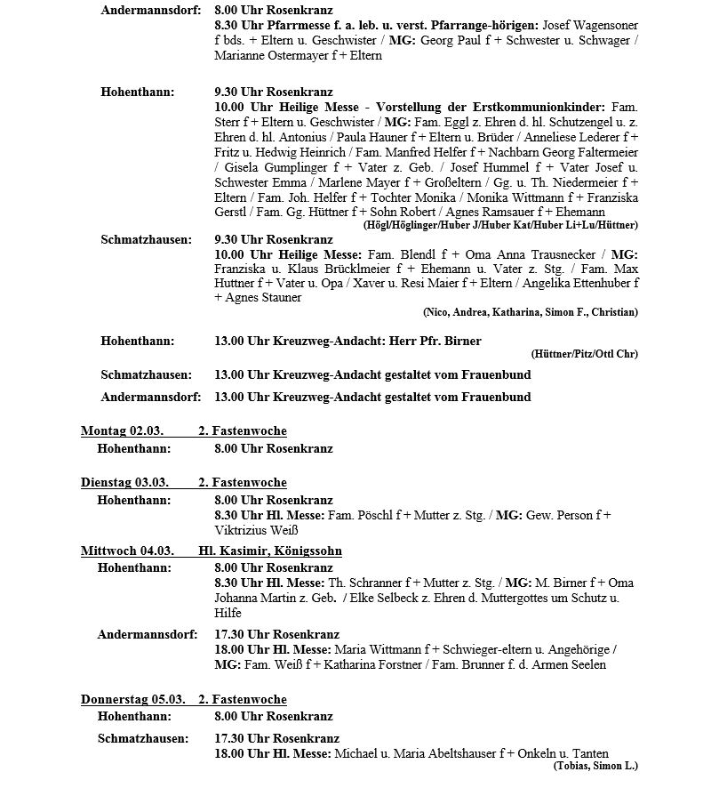 © 2010 - 2022 Pfarreiengemeinschaft Hohenthann - Schmatzhausen - Andermannsdorf |