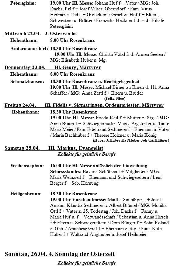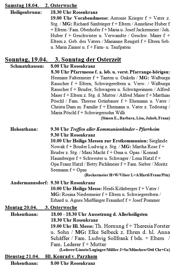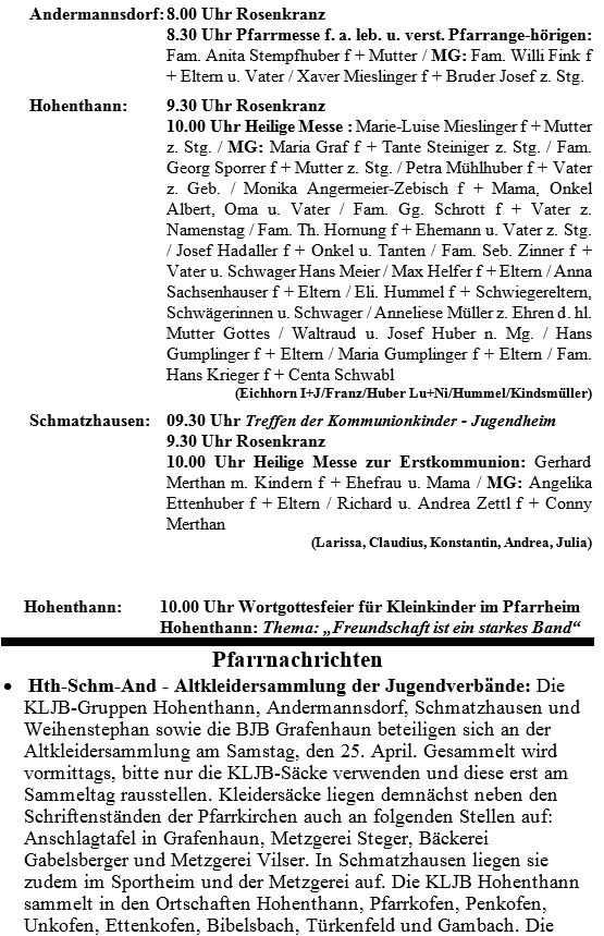 © 2010 - 2022 Pfarreiengemeinschaft Hohenthann - Schmatzhausen - Andermannsdorf |