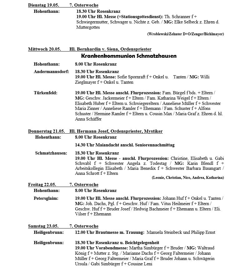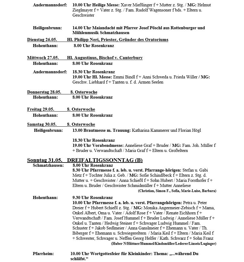 © 2010 - 2022 Pfarreiengemeinschaft Hohenthann - Schmatzhausen - Andermannsdorf |