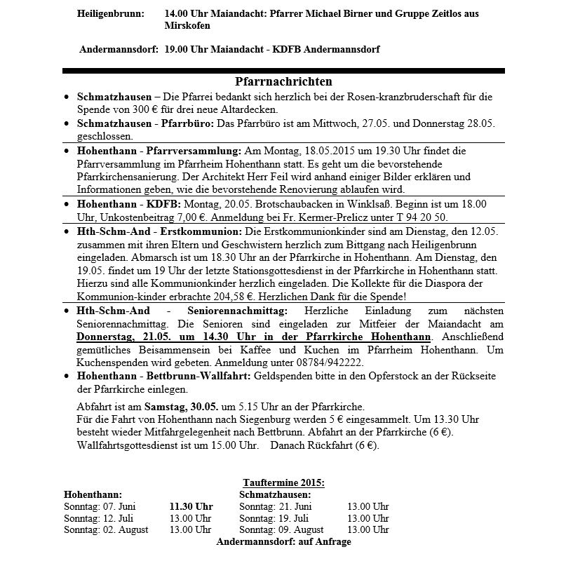 Pfarrbrief vom 11.05. bis zum 31.05.2015
