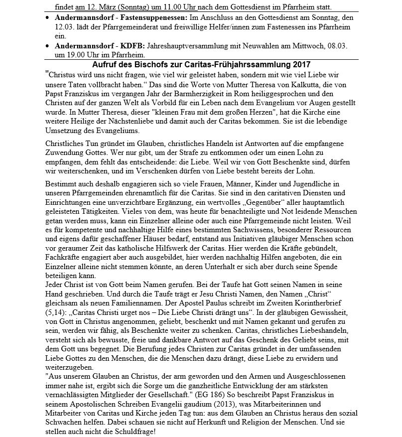 Pfarrbrief vom 06.03. bis zum 19.03.2017